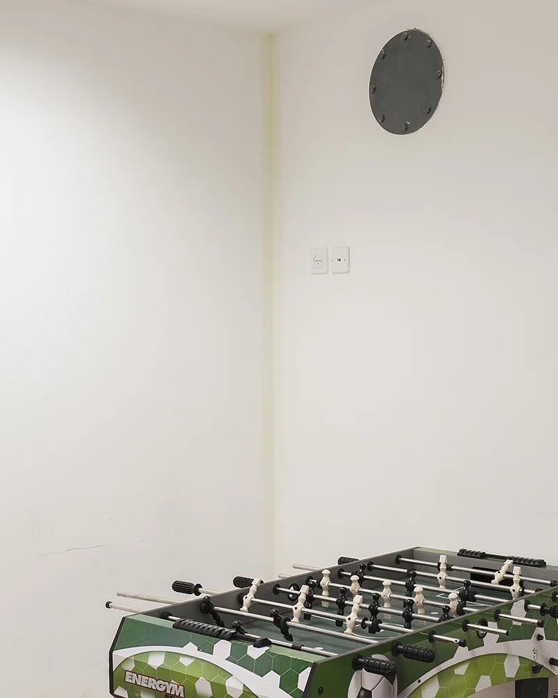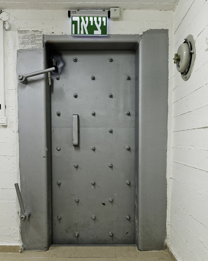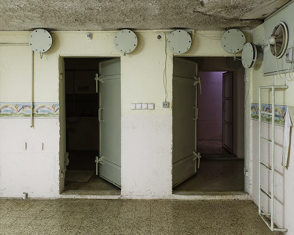 The photographs in this series document these bomb shelters and offer a window into the collective mindset of the Israeli people. Israelis have normalized this “doomsday space” into their daily lives, often using the shelters as dance studios, community centers, pubs, and places of worship. For Jewish Israelis haunted by a history of exile and persecution, these shelters are the architecture of an existential threat – both real and perceived.