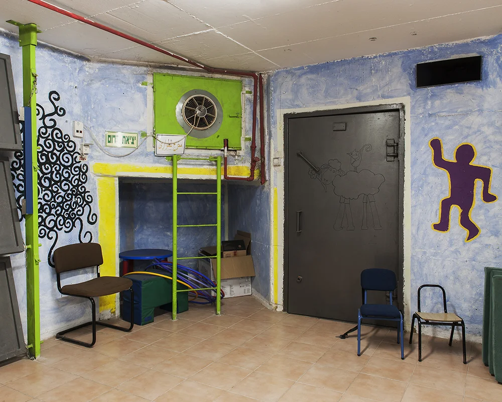 Since its creation in 1948, the State of Israel has felt itself isolated and beset by enemies seeking its destruction. This collective siege mentality is best expressed in the ubiquity of the thousands of bomb shelters found throughout the country. By law all Israelis are required to have access to a bomb shelter and rooms that can be sealed off in case of an unconventional weapons attack. There are over 10,000 public and private bomb shelters found throughout Israel and the Occupied Territories.