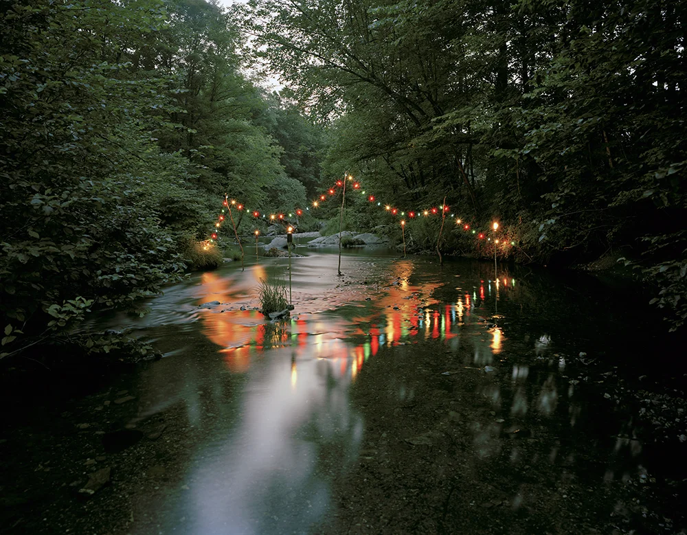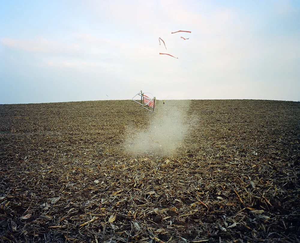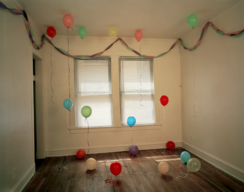 In calculated performances that intersect with photography’s documentary potential, I explore ephemeral occurrences. Making such humble events happen is alchemy of sorts, the transformation of the mundane into the poignant. Within the constructed images, I reposition specific celebratory iconography to create minor spectacles. My process requires detailed and elaborate production outside the photographic frame so that what appears within the frame implies simplicity and straightforwardness. It is important to me that these constructions actually exist in the world, if only for the moment in which the photograph is made.