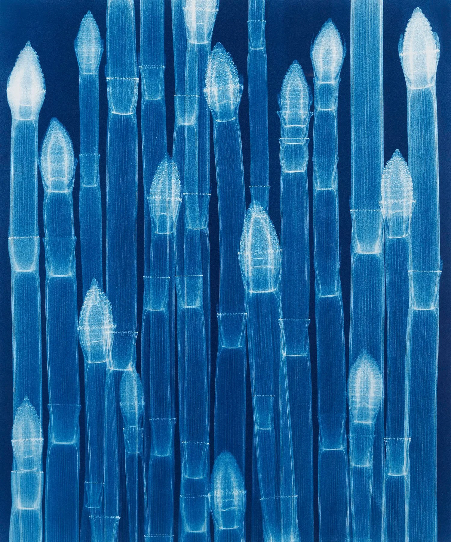 My work explores the intersection of art and science using x-ray imaging combined with the cyanotype printing process. Using x-rays—a medium typically employed for medical or scientific purposes—I reveal the inner architecture of botanical forms, offering a symbolic meditation on transparency, transformation, and unity. We tend to view the world as being composed of discrete objects, including ourselves. Yet energy flows through all things: x-rays, radio waves and much more, hinting at a deeper connectedness. The transparency of form revealed by the x-ray imaging becomes a metaphor for this unseen interconnected reality.